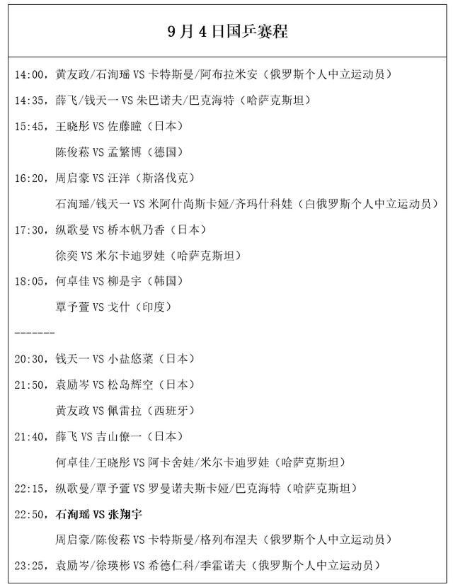 那么大家觉得接下来中国队会在9月4日的对决中取得几场胜利?中日运动员之间的交手结果会如何?欢迎留言写出你的预测吧!